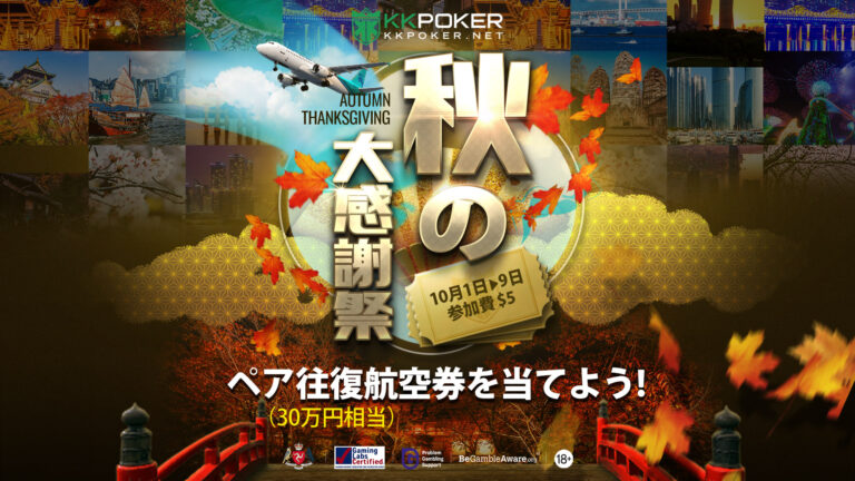 スペシャルイベント$950K超 Holiday Countdown今年もKKPokerでいちばん“稼げる季節”がやってきた!🎄総額$950,000超のプライズを大放出🎉 2025年のラストを勝利で飾り、2026年に向けてKKPokerとカウントダウン!🗓️ トップキャッシュプライズ$2 […] 12月 2, 2025$30,000 KK Legend 2025Kings JackpotHalloWin 2025$20,000 ラッキーくじ$555K超!5周年記念のビッグイベント!KK LEGEND 2025Super SpinUp Carnival 20252025 KKPoker Micro MasterシリーズLucky KujiMarch Millions 2025!保証賞金$1M超え!KKGAMEでプライズ総取り!KKの野望!大名と共に天下統一を目指せ!$750,000超!ホリデーイベントHoliday Express!KK LEGEND $18K超フリーロールでプライズ大放出!妖怪大襲来!KK百鬼夜行で百鬼王を目指せ!$100K超え!HALLOWINシリーズ!リングゲームファンに贈る!KK ARCADE!KKPOKER4周年記念!日本全国東西対抗バトル!$500K Mystery Glory!4周年記念イベント開催!史上最大のキャッシュバック!直接入金3%キャンペーン🎉$135,000超!Micro Masterシリーズ2024KK LEGENDが復活! プライズチャンス×2あの人気ディーラーと対戦!🤵♀️🤵♂️$10KディーラーバウンティカップRoute $66K ミステリーバウンティ『デポジットミッション』で$100ゲット!5月は PLO5 強化月間!$10K Legend KO リーダーボードKKPoker VEGAS DREAM 2024$55K超え❗イースター特別イベント🐰🐣🌷保証賞金総額200万ドル超え!MARCH MILLIONS 2024KKPokerが送る肉の日イベント『神肉祭』❗KK LEGEND シーズン2!$10K超えフリーロールチャレンジ!$700K GTD ニューイヤーシリーズ$300K GTD XMas FestivalKKPoker史上初!100万ドルMTTイベント!KK LEGEND!$50,000超のMTTチャンレンジ$250KハロウィンボーナスイベントKKPokerのAOFトレジャーハントで$20,000ハント!KKPoker 3周年記念🦊日本全国東西対抗バトル🦝前代未聞の高額賞金!$200Kを大放出!3周年記念SCRATCH TO WINオンライン派に朗報💥追加ボーナス決定✨KKPoker LIVE TOKYO 2023 SUMMERJuly 2023 – KKPoker Promotions!夏だ!祭りだ!AOFだ!AOF夏祭り開催🎐2023年6月! KKPOKER(KKポーカー)プレイして稼いじゃおう!【梅雨】雨にも負けず☔高級和牛プレゼント企画!友達をKKPokerに招待して$200ボーナスをゲットしよう!2023年5月! KKPOKER(KKポーカー)プレイして稼いじゃおう!ベガス行きのラストチャンス🎫【サテライト to Vegas】スタート✨ラスベガス行きの$15Kベガスドリームパックをプレゼント$100K EASTER HUNTマルチデイシリーズ!完全無料【かっ飛ばせ6!KKPoker】3/31(土)〜$6,000が当たるプロ野球連動イベ⚾️2023年3月! KKPOKER(KKポーカー)プレイして稼いじゃおう!LOV3 シリーズ 2023! トータル$65K GTD日本全国の猛者集合!KK 店舗対抗戦プロジェクト、始動!2023年2月! KKPOKER(KKポーカー)プレイして稼いじゃおう!ROCKETシリーズが戻ってきた!$25K GTDオーバーのチャンス!KKPOKER(KKポーカー)プレイして稼いじゃおう!2023年1月KKPOKER(KKポーカー)プレイして稼いじゃおう!2022年12月SCRATCH THE WINNER!$20K+ サッカーワールドカップ ラッキードロー!CHEERS FOR VICTORY 2022!KKからフリーロールをプレゼント!KKPoker(KKポーカー)プレイして稼いじゃおう!KKあやかしカードを全種集めよう!$200相当の報酬をゲット!KKあやかしファミリーが登場!ROCKETシリーズがスタート!GTD $26K 超え!ハロウィン TRICK OR TREAT イベント!ボーナス保証!KKPoker(KKポーカー)プレイして稼いじゃおう!ミステリーボックスを K.O. せよ!プライズ無限大!KKPoker 秋の大感謝祭 2022KKPOKER × 池内一樹 VVSOP 2022 チャリティ MTT【二周年記念】KKPOKER 第二回日本全国東西対抗バトル再登場KKPoker(KKポーカー) 2周年記念!夏の大感謝祭 2022 開催!7月3日▶9日開催!$7K FLASH FEVER リーダーボードPLO5 FESTIVAL: $5,000 リーダーボード!6月19日〜26日$50K+$3K Arena PKO: 13-18 JuneLUCKYFLIP で賞金がっぽりゲット!KK オールスター大集合!意気衝天決闘!春の大感謝祭 2022開催!$100K Thunder Freeroll 必勝のヒント$100K THUNDER FREEROLL シリーズが新登場!$100K GLORY PKOが帰ってくる!Day 1はKKPOKERで複数日開催!冬の大感謝祭 2022 開催!KK達人戦参加者の紹介KK達人戦が再登場!KKPOKER年末年始特別イベント「新春紅白PK大合戦」PLO5 FESTIVAL!$50,000 山分けスペシャル!$50K PLO5 Festival!1名限定最大$1,000還元!KK動画を投稿してくれるTikToker求む!「KK猛者激戦」開催!2021年最強プレイヤーは誰だ?!KKPoker 友達招待キャンペーン 2021秋の大運動会!ミッションクリアのスピード勝負!KKPOKER LIVE BATTLE シリーズ熱血開催$100K KKPoker Cupに向けて2.5万ドル分ゲットのチャンス!【KKPOKER一周年記念】第一回「日本全国東西対抗バトル」大開催!夏の大感謝祭 KKPoker特製メダルを勝ち取ろう!栄誉あるクラブ柱決戦開催!マンスリーチケットパス!100%以上の価値あり!6月22-30日の注目MTT13-20 JUNE FEATURED MTT SCHEDULEKK達人戦本戦に参加する達人大公開AOF Blitzでボーナスゲット!保証賞金$50,000ハイローラー!今月もメインイベントがやって来ました!KK達人戦のYoutuberシリーズ戦:人気Youtubeとの対決!週末の王者を目指せ!KK達人戦|参加無料の1.6万ドル争奪戦, 最強のプレイヤーたちを倒せ!5月2日にハイローラーがカムバック!保証賞金$50,000!GWハッピー入金キャンペーン!入金するだけで大量ボーナスGET!3/24-4/7 日本限定キャンペーン!新人限定トーナメント「RISING STAR