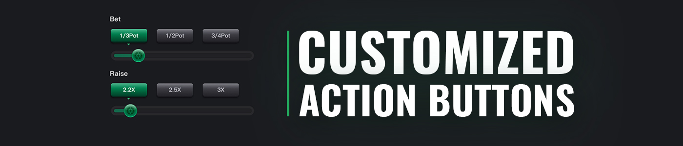 アップデート後の「アクションボタン」では、カスタマイズされたベット額やレイズ額を設定することができ、KKPokerのインターフェースをより簡単かつスピーディーに使用することができます。