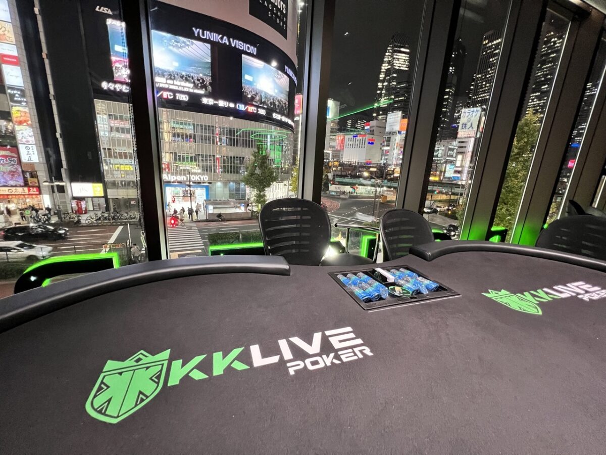 会場はJR線 新宿駅 東口 徒歩3分の、高級感たっぷりなポーカールーム KKLIVE POKER SHINJUKU。KKPOKERアプリの世界観を完全再現した近未来サイバーな空間です😆