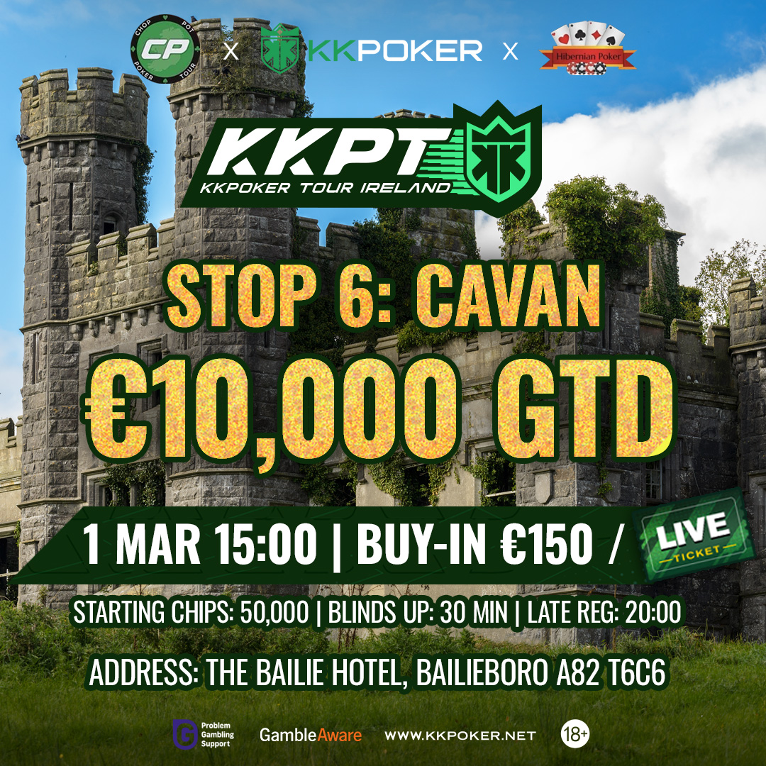 いよいよKKPT Irelandの最終戦が開催!2025年3月26日〜30日、Dublin Poker Club にて、€100,000保証のビッグイベント が待っています!参加費は€300 !