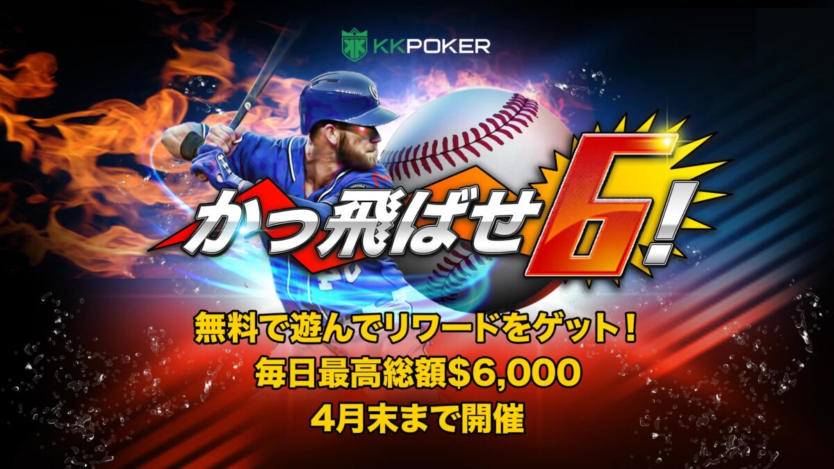 完全無料【かっ飛ばせ6!KKPoker】3/31(土)〜$6,000が当たるプロ野球連動イベ⚾️