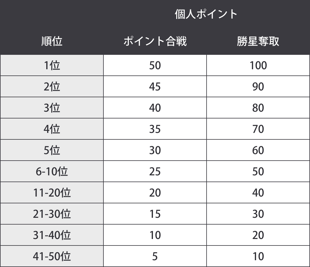 チームポイント&個人ポイントを獲得し、リーダーボードで上位ランクインを狙え✊