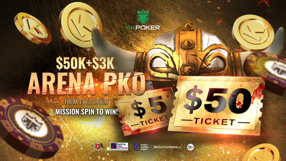 The $50K+$3K ARENA PKO takes place on 18 June at 21:30 (GMT-4) with a $50 buy-in and features special poker streamers from around the world, each holding a $100 bounty prize!